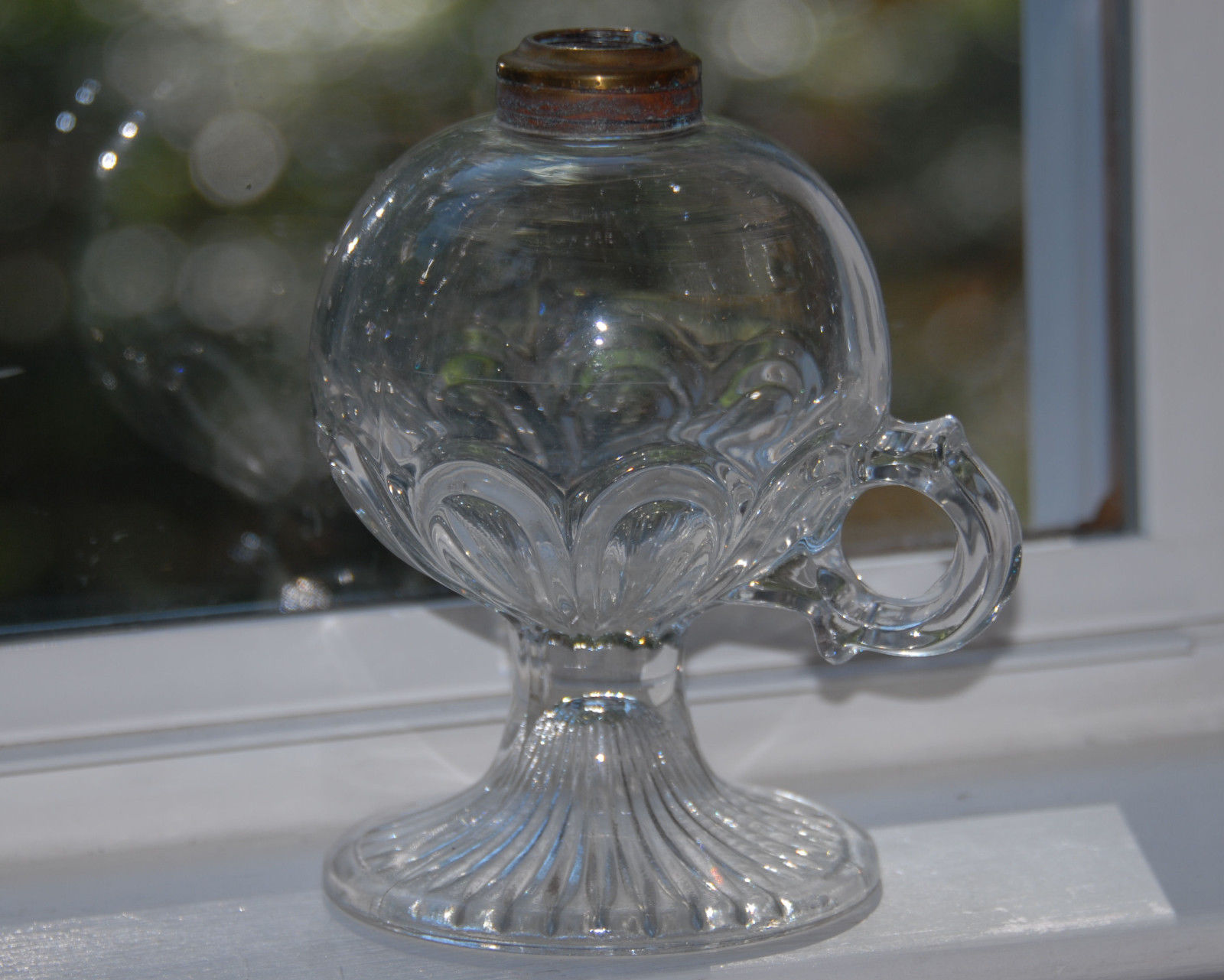 Early Footed Flfint Glass Finger Oil Kerosene Fluid Lamp Rare - 3