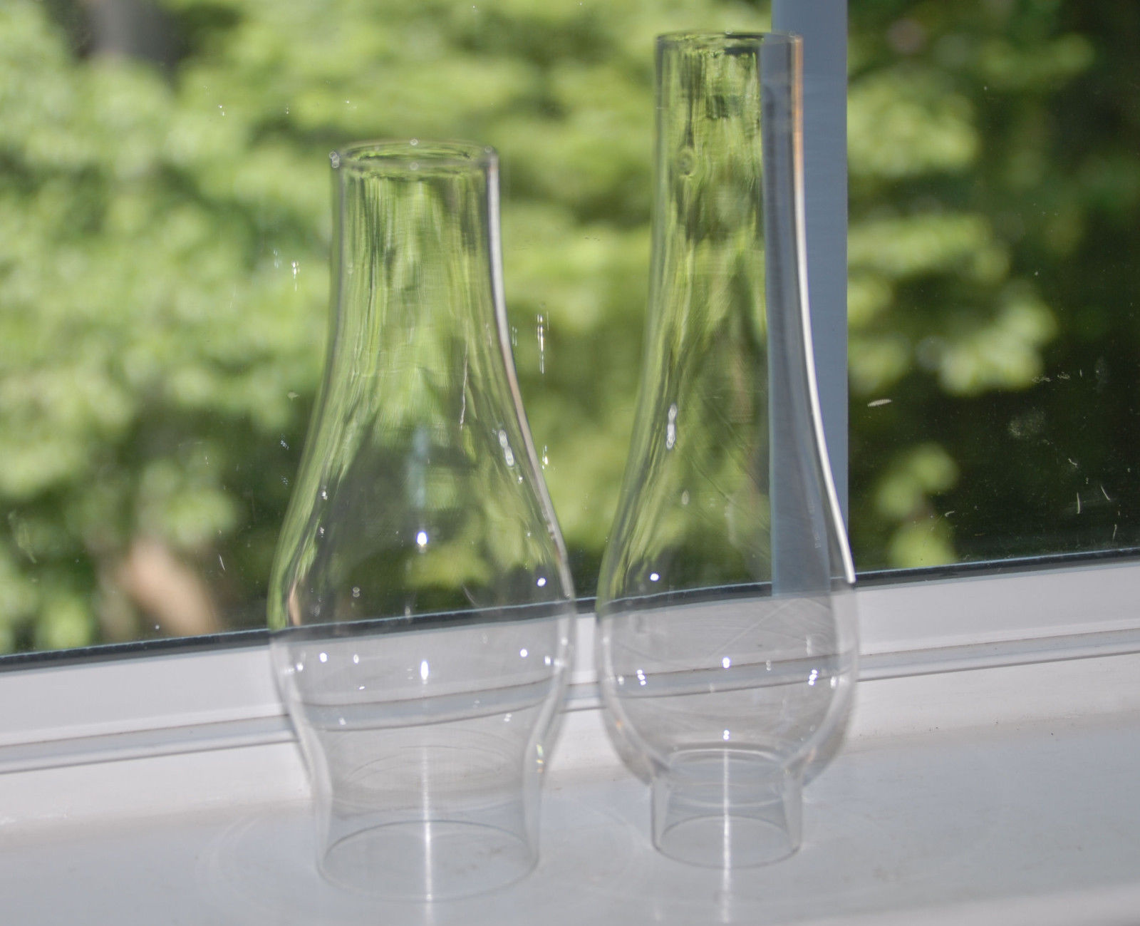 Title (ebay affiliate link): Two #0 Early Oil Kerosene Lamp Chimney Parts Macbeth Pearl Flint Glass