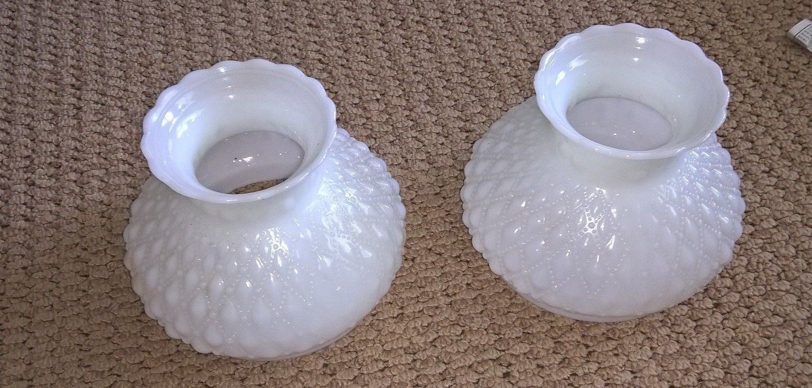Pair Of Vintage Milk Glass Lamp Shades /Hurricane/ Diamonds/Ruffled