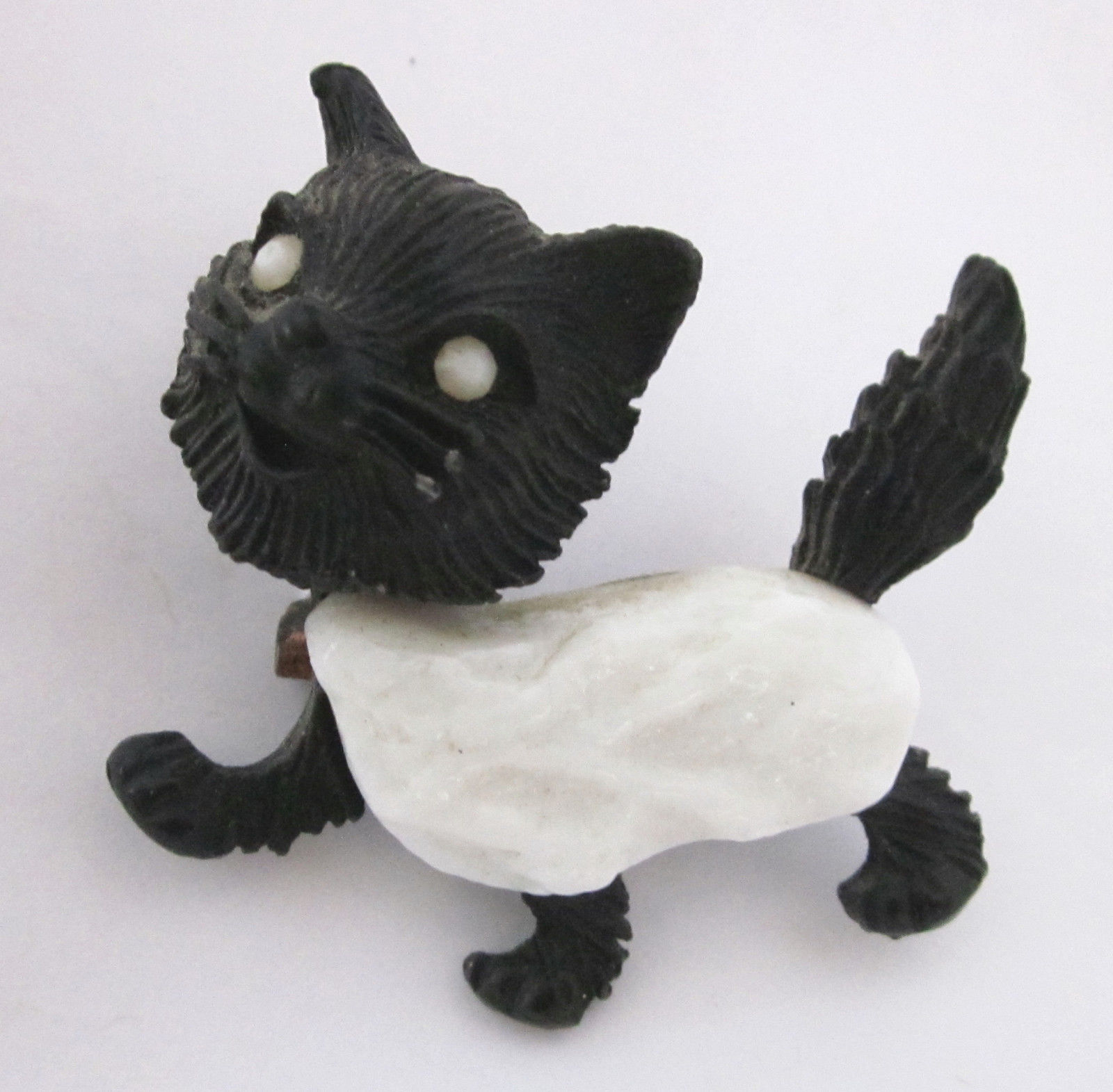 Vintage Black Enamel/Milk Glass Cabochon Cat Brooch