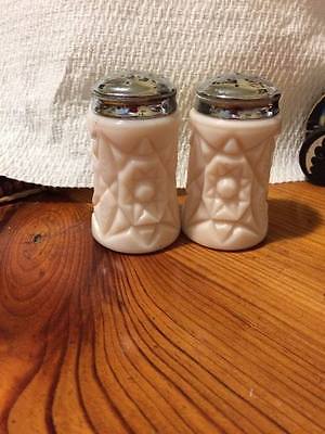VINTAGE 50''S FENTON PINK MILK GLASS SALT AND PEPPER SHAKERS