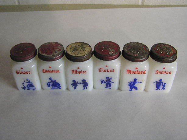 6 Vintage Milk Glass Spice Jars-Kitchen