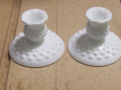 VINTAGE FENTON WHITE MILK GLASS HOBNAIL PAIR OF 3-1/2" CANDLESTICKS HOLDERS