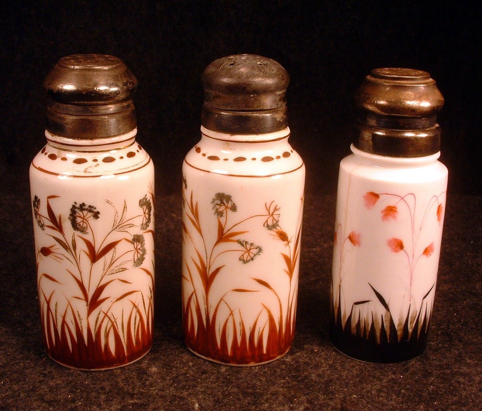 Title (ebay affiliate link): 3 Victorian Floral Dec. White Milk Glass Salt Shakers Mt. Washington ? Lot #4