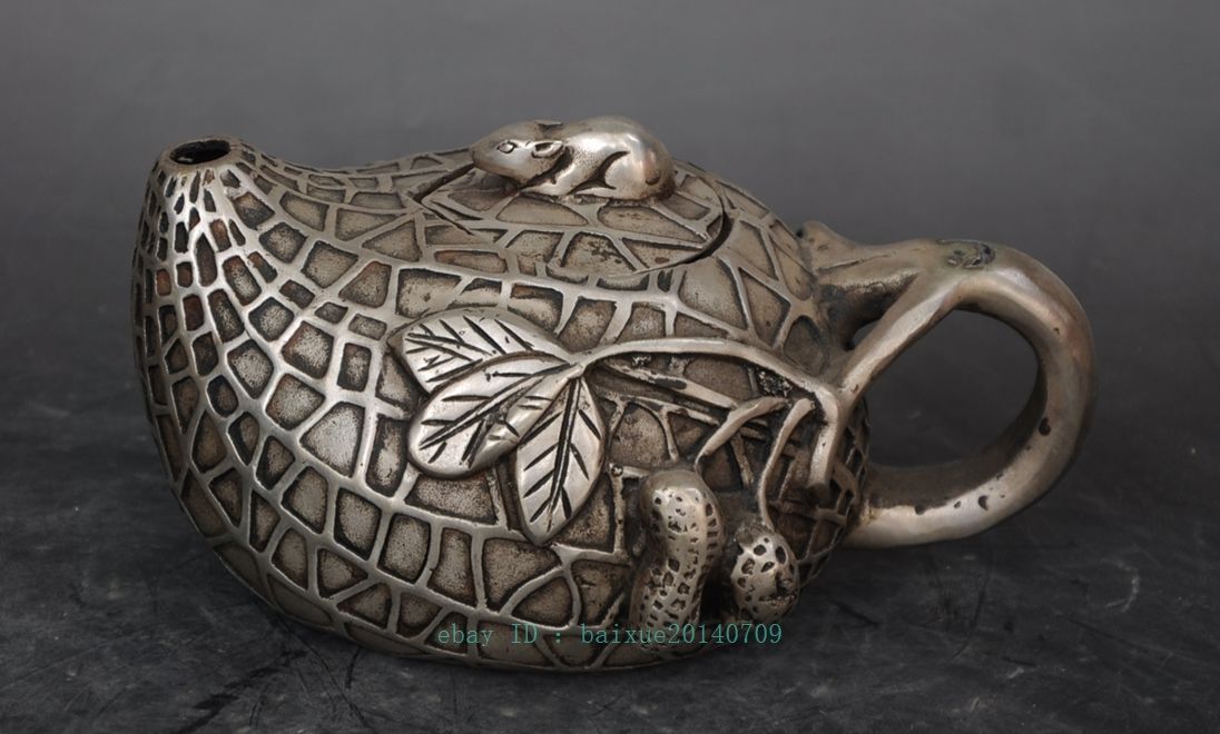 Title (ebay affiliate link): Chinese old Tibet antique silver plating hand engraving peanut and mouse teapot