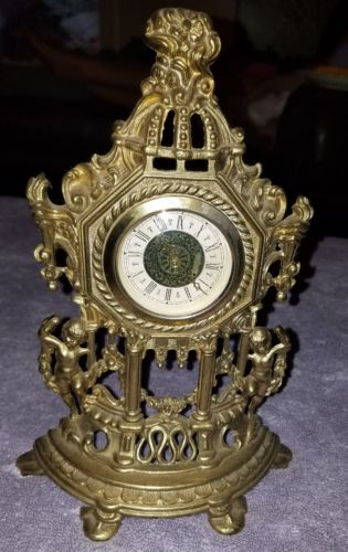 ANTIQUE / VINTAGE ORNATE WIND UP CLOCK BRASS GADA ?