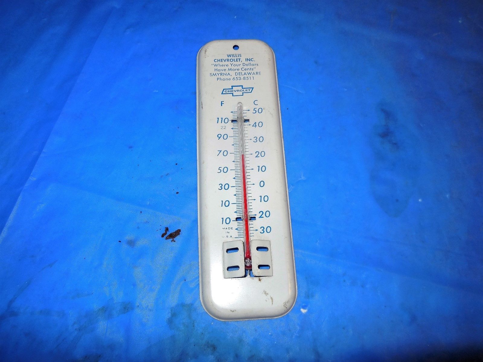 VINTAGE ORIGINAL WILLIS CHEVROLET ADVERTISING THERMOMETER!! SMYRNA DELAWARE!!!!