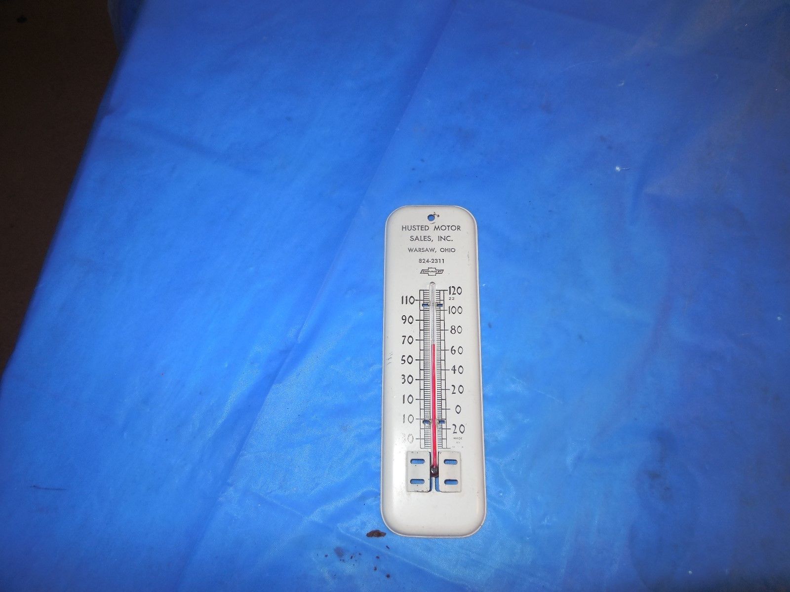 VINTAGE ORIGINAL HUSTED CHEVROLET ADVERTISING THERMOMETER!! WARSAW OHIO!