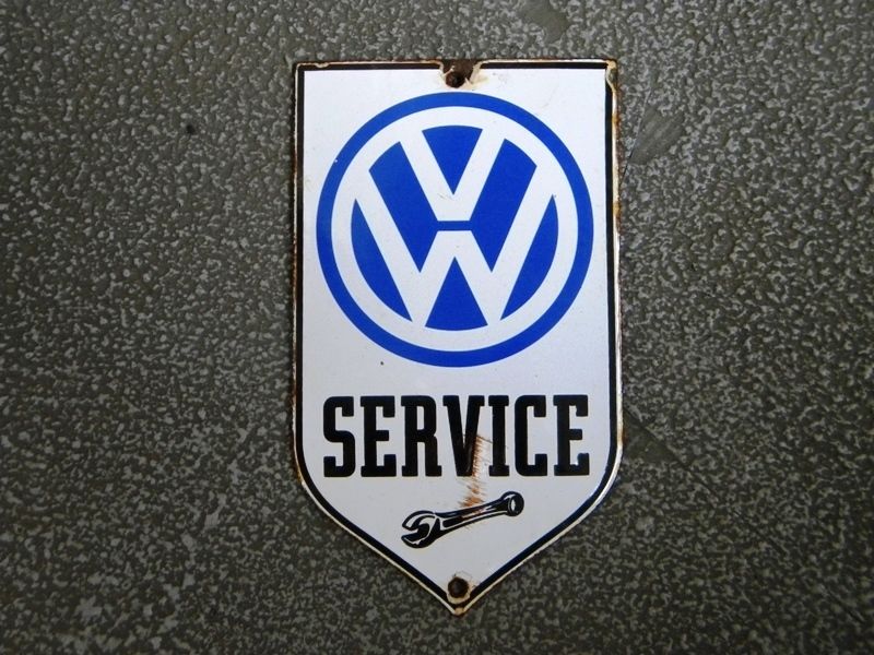 VW SERVICE OLD PORCELAIN SIGN ~5-3/4"x 3-3/8" VOLKSWAGEN OIL BEETLE GAS GOLF GTI