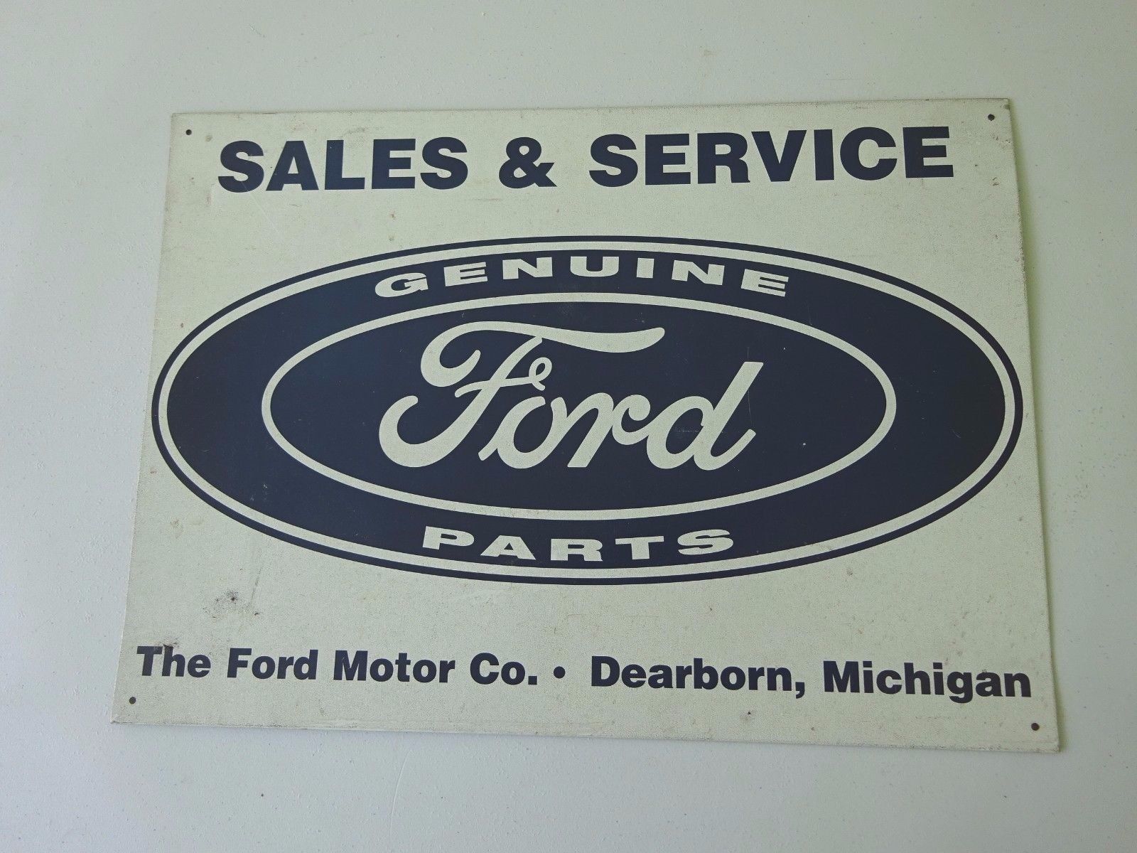 Metal sign, Sales & Service, Genuine Ford Parts, Ford Motor Company, Dearborn, M
