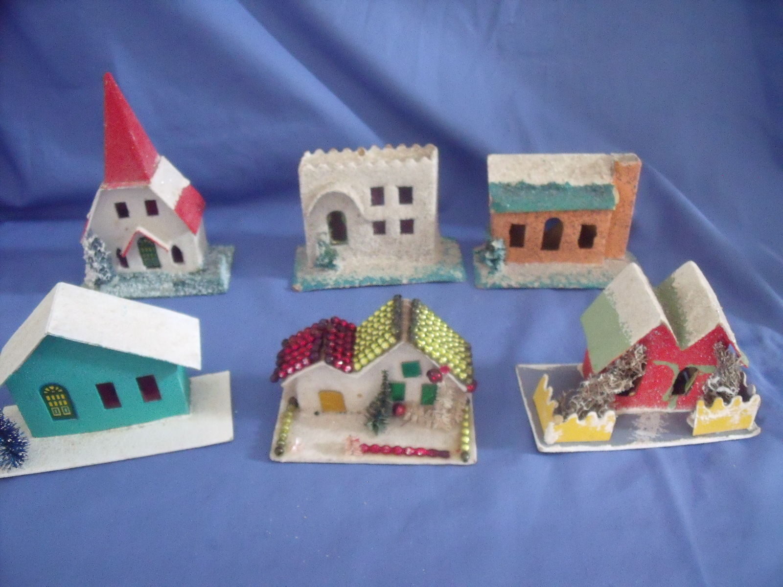 Title (ebay affiliate link): 6 VINTAGE PUTZ BUILDINGS-CHURCH-HOUSES MADE IN JAPAN-CARDBOARD,GLITTER,BEADS++