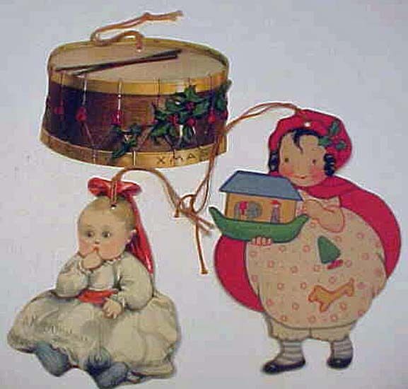 Title (ebay affiliate link): THREE DIE-CUT CHRISTMAS TREE ORNAMENTS or TIE ON TAGS