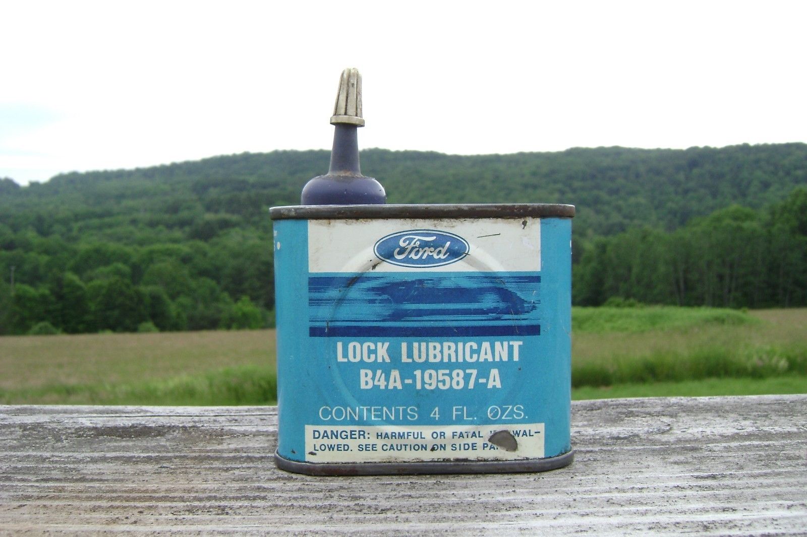 Title (ebay affiliate link): VINTAGE FORD LOCK LUBRICANT ADVERTISING CAN 4FL OZS NICE SHAPE RARE