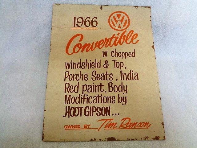Title (ebay affiliate link): Vintage Car Lot For Sale Sign 1966 VW Convertible Owned By Tim Ranson