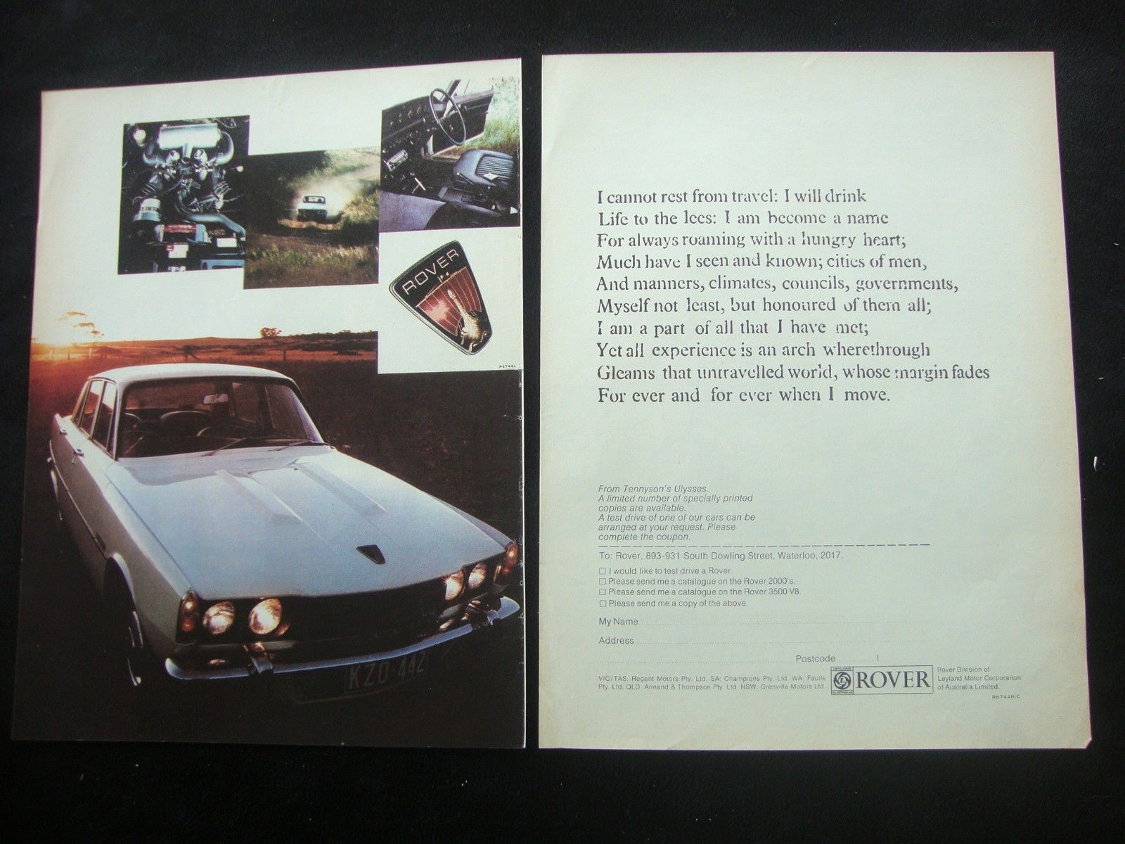 Title (ebay affiliate link): 1972 P6 Rover 2000 & 3500 V8 Sedan Leyland Aust 2 Page Aussie Original Mag Adv