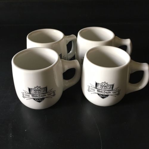 Title (ebay affiliate link): Set of 4 Vintage White Castle Coffee Mugs With Ashtray Bottom