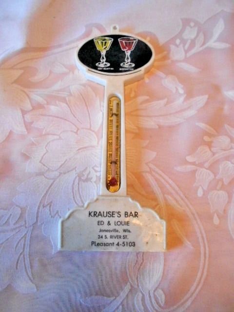 Vintage Plastic Advertising Thermometer Krause''s Bar Janesville WI Pleasant 4-51