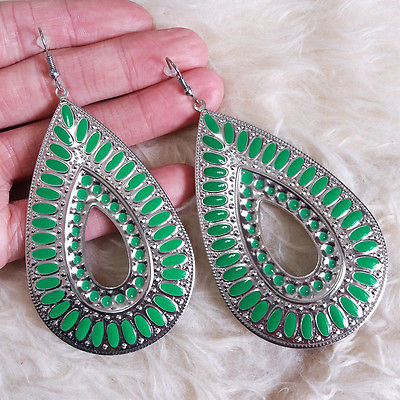 Title (ebay affiliate link): Vintage Antique Womens Big Green Hollow Teardrop Charm Dangle Drop Hook Earrings