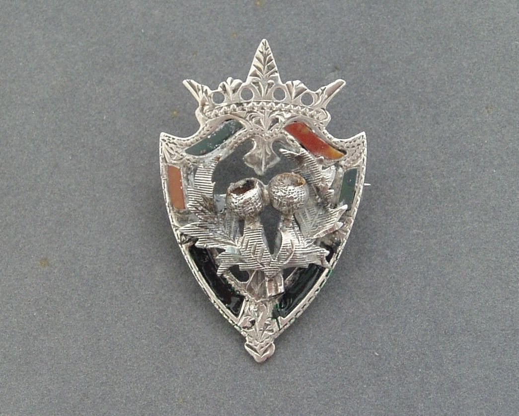 Title (ebay affiliate link): ANTIQUE SCOTTISH PEBBLE HARDSTONE SILVER SHIELD BROOCH FOR REPAIR BIRM 1907