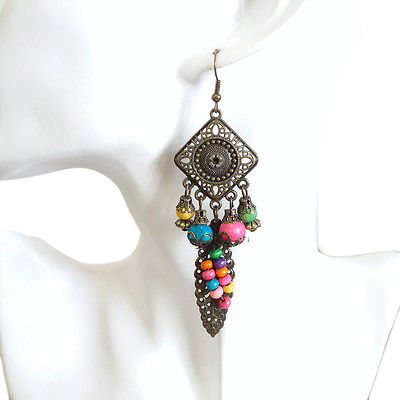 Title (ebay affiliate link): Women Vintage Indiana Boho Antique Hollow Multi Colors Bead Dangle Drop Earrings