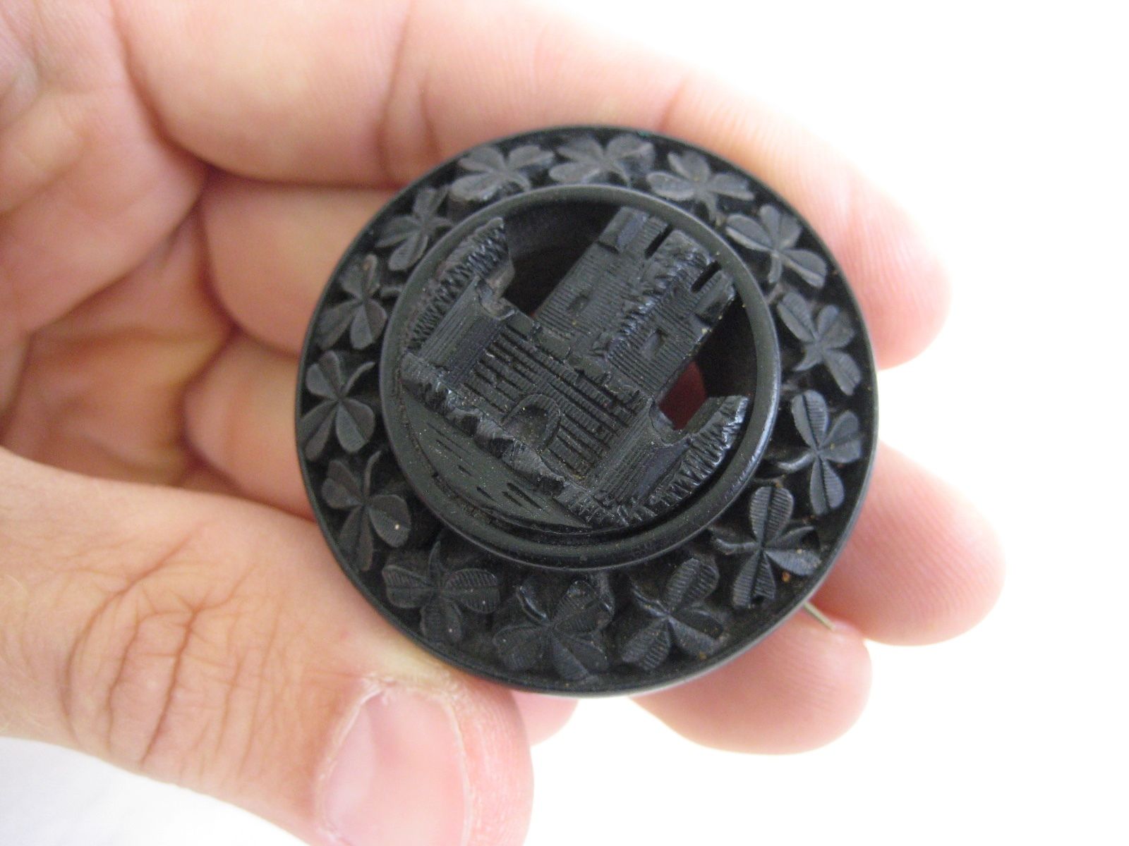 Title (ebay affiliate link): Antique Victorian Irish Bog Oak Castle & Clover Brooch