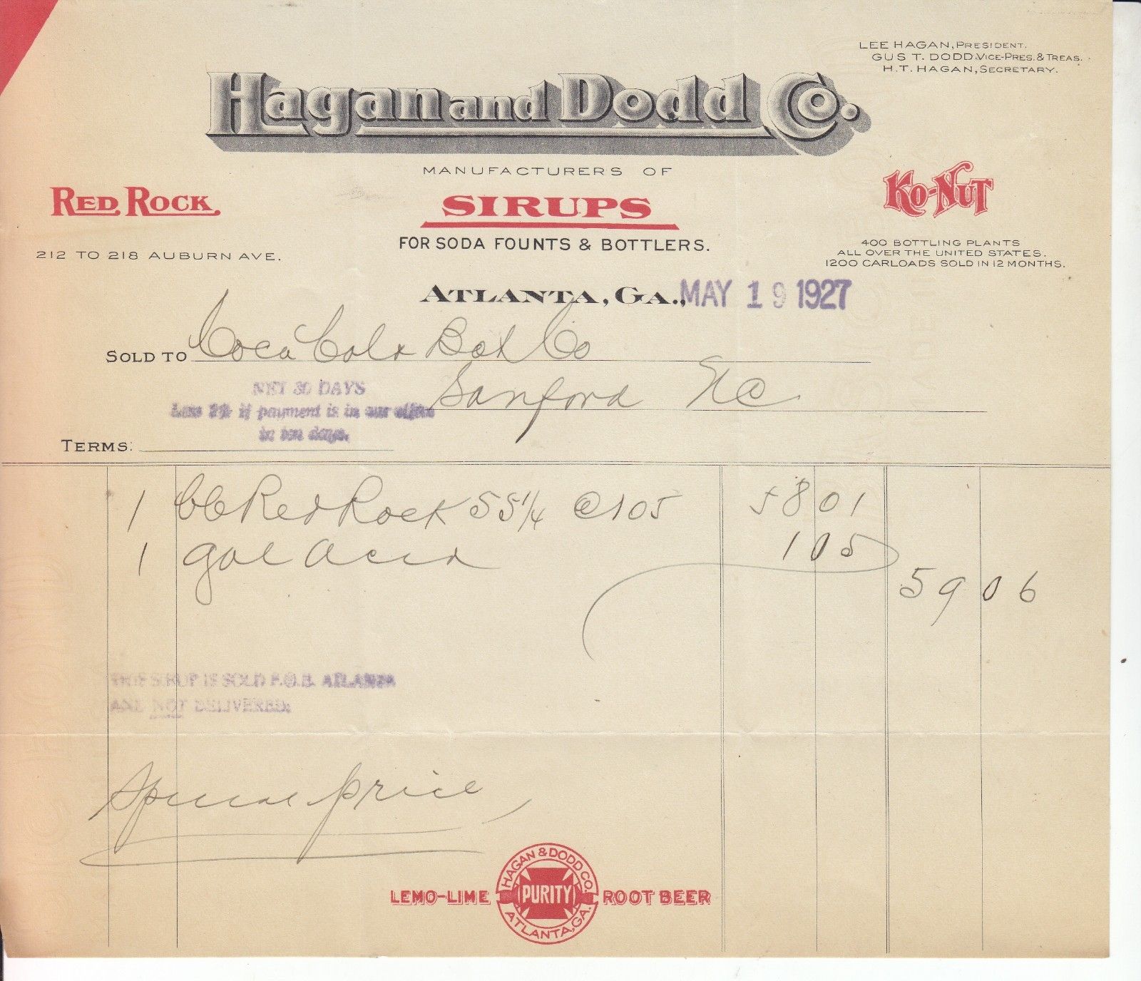 Title (ebay affiliate link): HAGAN AND DODD CO. INVOICE MAY 19, 1927 SIRUPS FOR FOUNTS & BOTTLERS RED ROCK