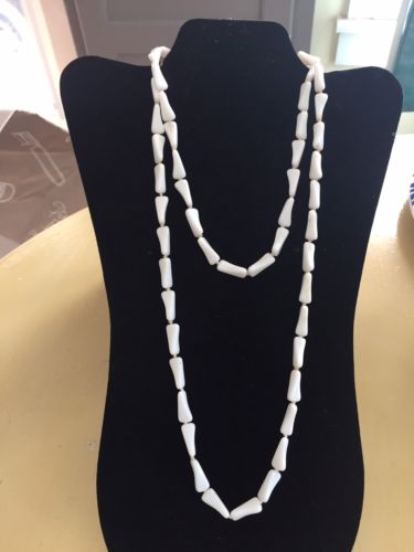 1940''s Vintage White Milk Glass Long 44" Summer. Necklace.