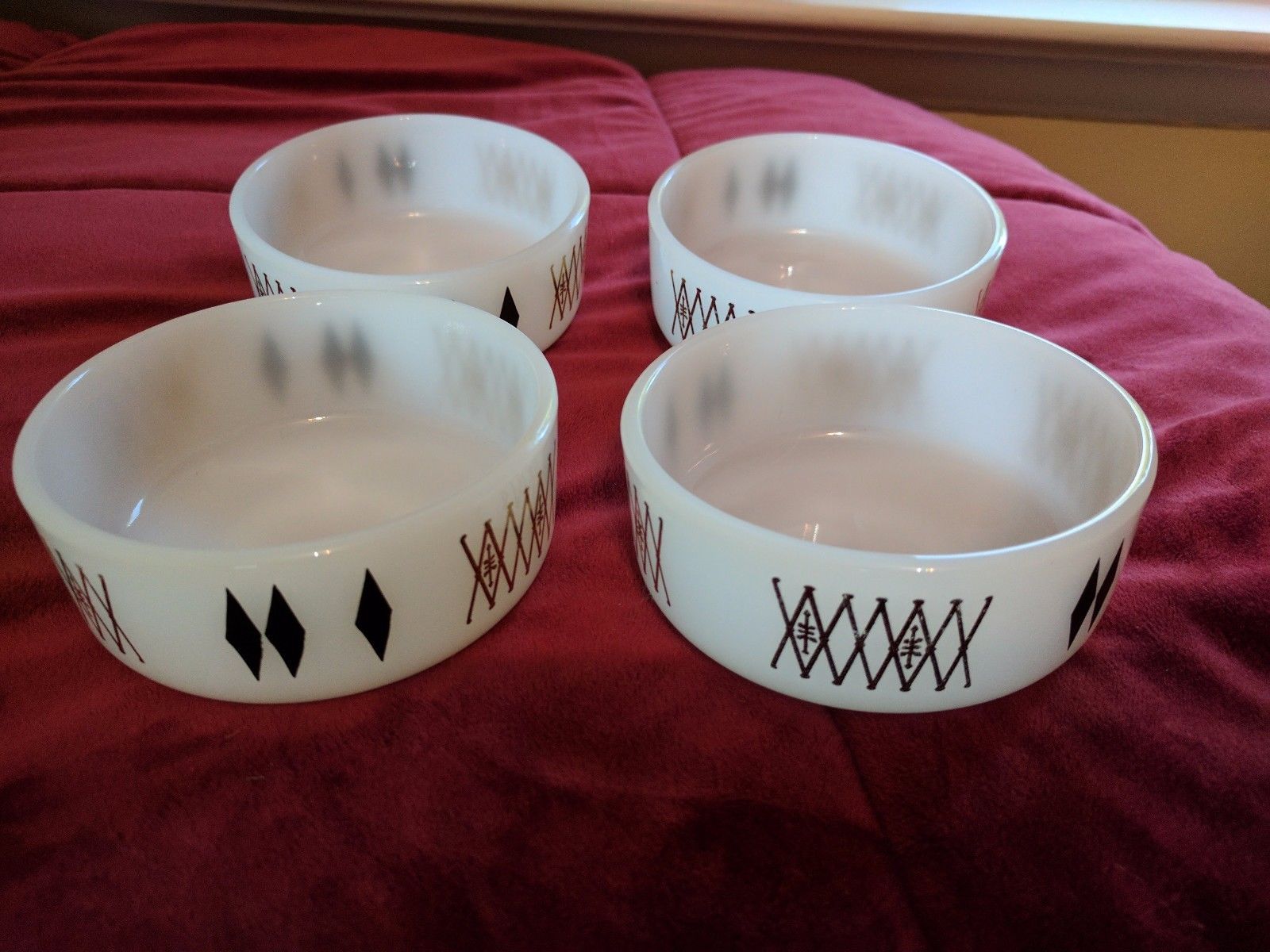FEDERAL GLASS set of 4 milk glass dishes bowls USA