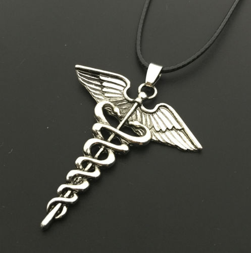 Title (ebay affiliate link): Antique Silver Plated Caduceus Winged Snakes Sword Pendant Necklace