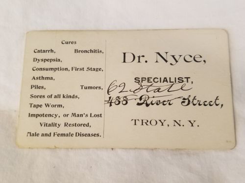Title (ebay affiliate link): Antique Dr. Nyce Specialist Business Card Cures Everything! 1900''s Troy New York
