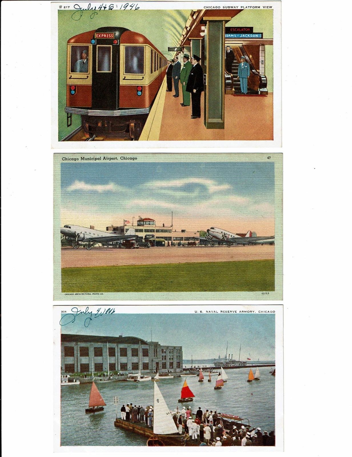 3 Card Lot, Chicago, Illinois, Subway Platform, Airport & Planes, Naval Armory!