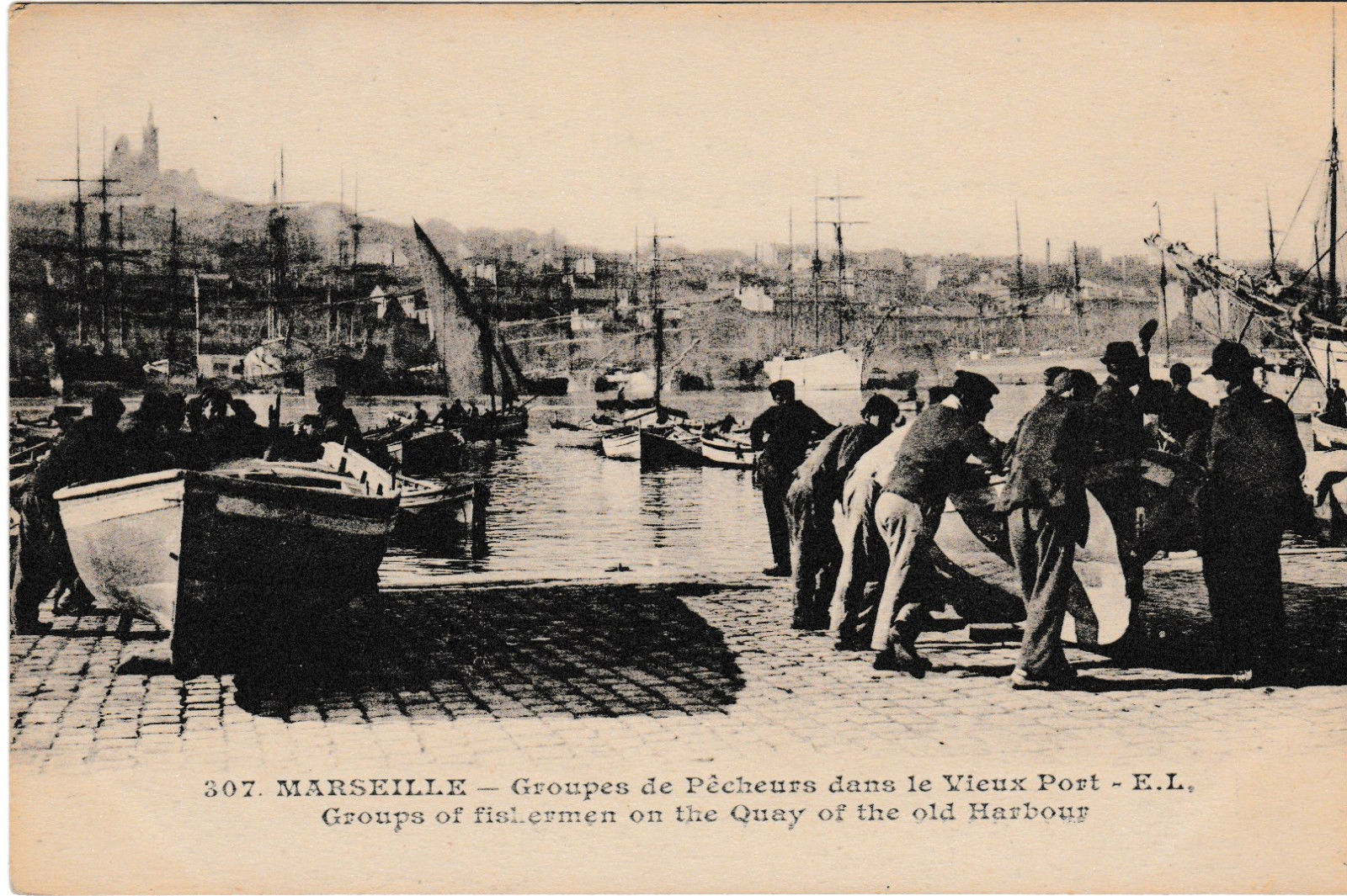 Title (ebay affiliate link): Marseille - Group of fishermen on old harbour - old post card