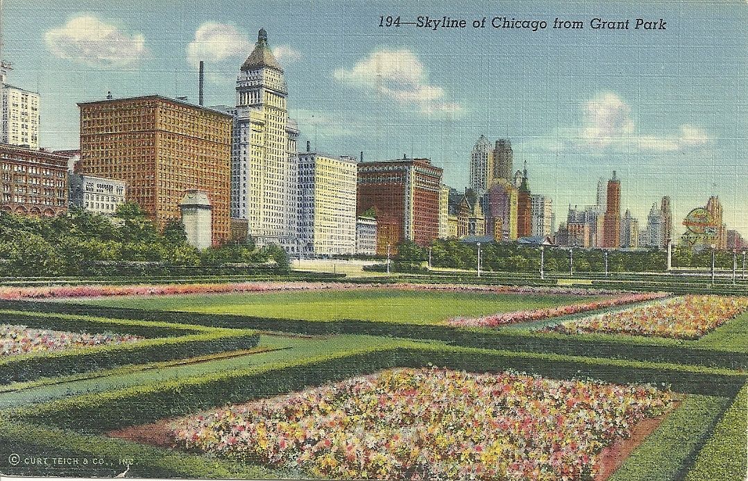 Title (ebay affiliate link): VINTAGE LINEN POSTCARD - SKYLINE OF CHICAGO FROM GRANT PARK, ILLINOIS