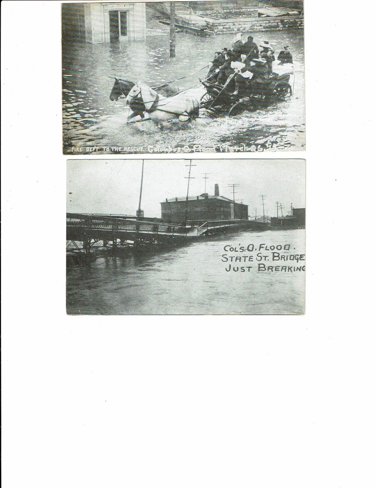 Title (ebay affiliate link): 2 Card Lot, Columbus, Ohio Flood Disaster 1913, Fire Department Rescue, Bridge!