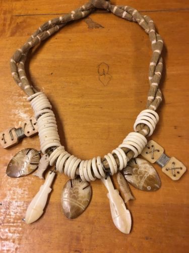 Title (ebay affiliate link): Hand Carved African Bovine Bone & Wood Necklace Unique Fish carvings
