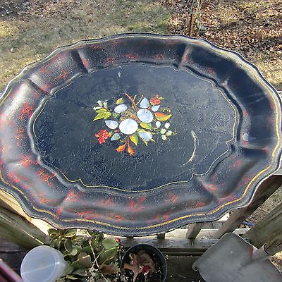 Primitive tin tole tray 19th century AAFA Pearl inlay stenciled THE BEST