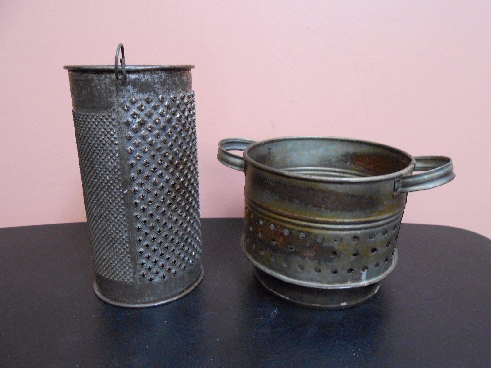 Title (ebay affiliate link): Early Antique Vintage Primitive Tin/Metal Round Cheese Grater + Round Collander