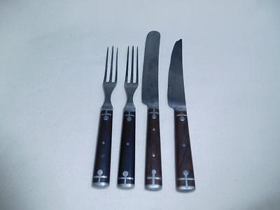 4 Pc Civil War Era Flatware Wood Handle w/Pewter Inlay 2 Knives+2-3 Prong Forks