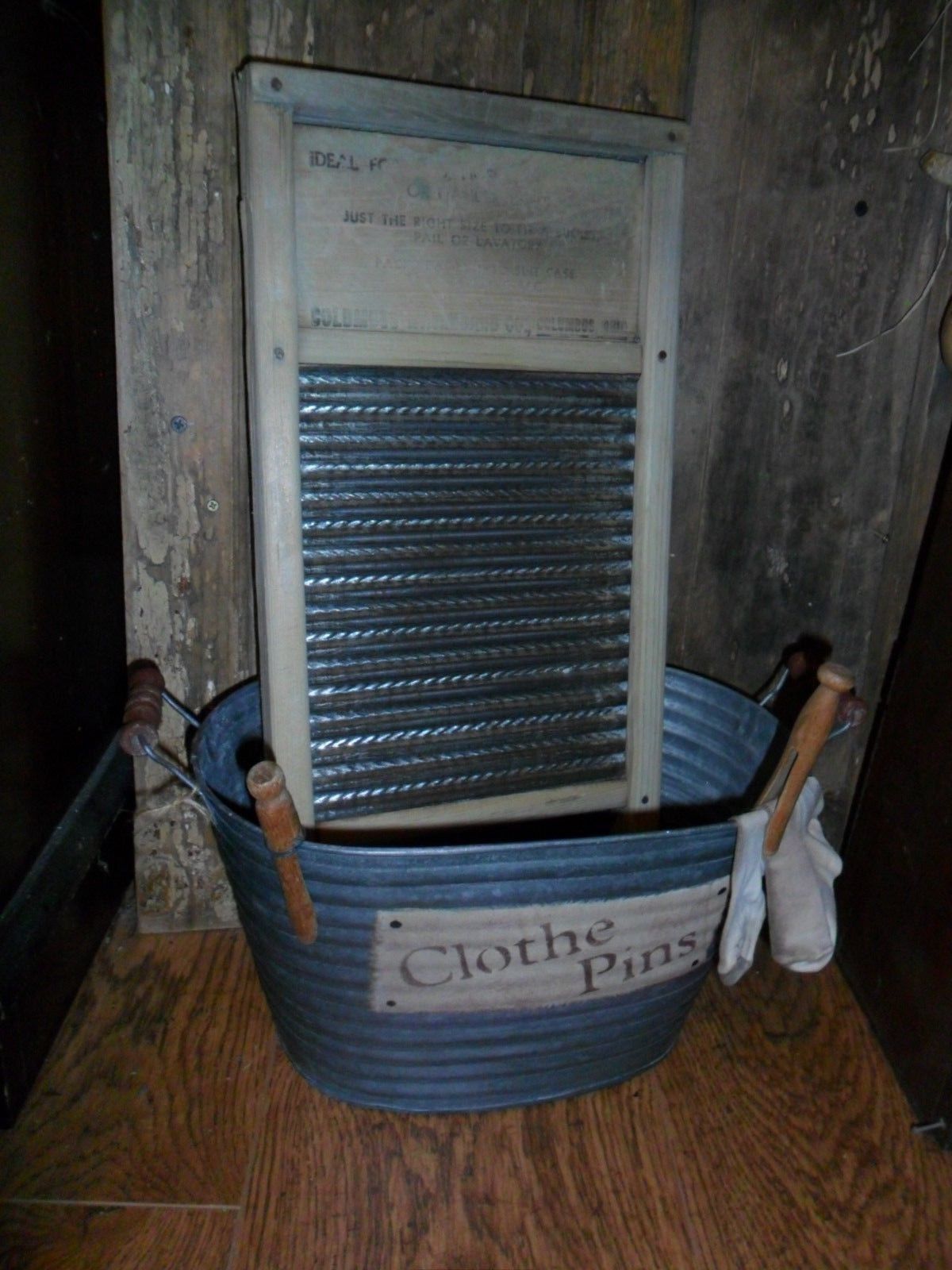 Title (ebay affiliate link): Primitive Wash Tub, Old Washboard, Farmhouse Laundry Room Gathering, Stockings