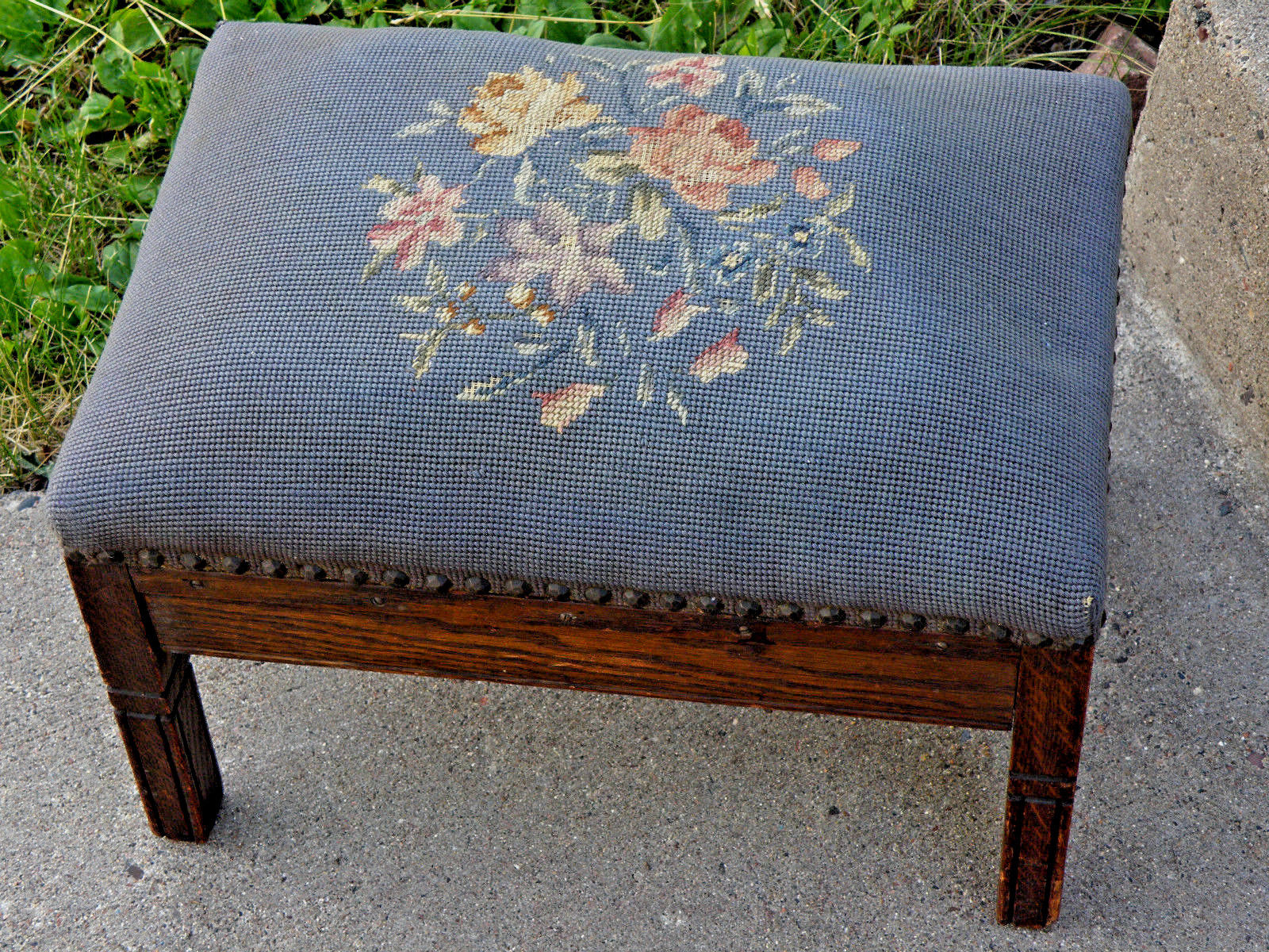VINTAGE NEEDLE POINT FOOT STOOL OTTOMAN