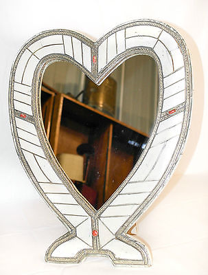 STUNNING HAND MADE ANTIQUE ARTS & CRAFTS / ART NOUVEAU HEART SHAPED MIRROR