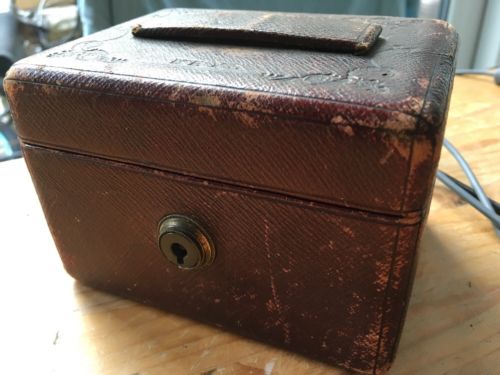 Title (ebay affiliate link): Early 19th Century Bramagh Key Safe, leather bound, for restoration, no key