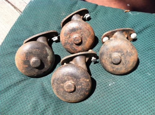 Title (ebay affiliate link): 4 Vintage Clinton 3-1/4" Heavy Cast Iron Industrial Cart Bin Swivel Dish Casters