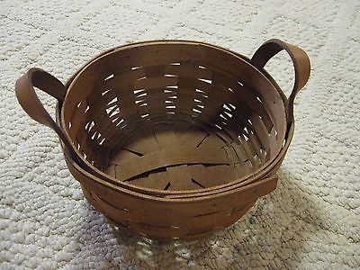 LONGABERGER BASKET SIGNED KW 1991 LEATHER HANDLES 6 1/2 INCHES GOOD CONDITION