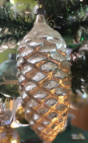 Title (ebay affiliate link): Antique GERMANY Silver PINE CONE MERCURY GLASS Christmas Ornament, 5"