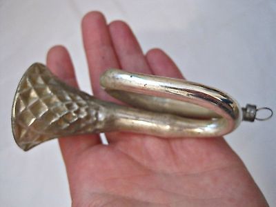 ANTIQUE EMBOSSED GLASS CHRISTMAS ORNAMENT trumpet MUSICAL INSTRUMENT GERMANY