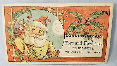 1800''s Victorian Trade Card Santa Bag Toys London Bazar NY NO Reserve