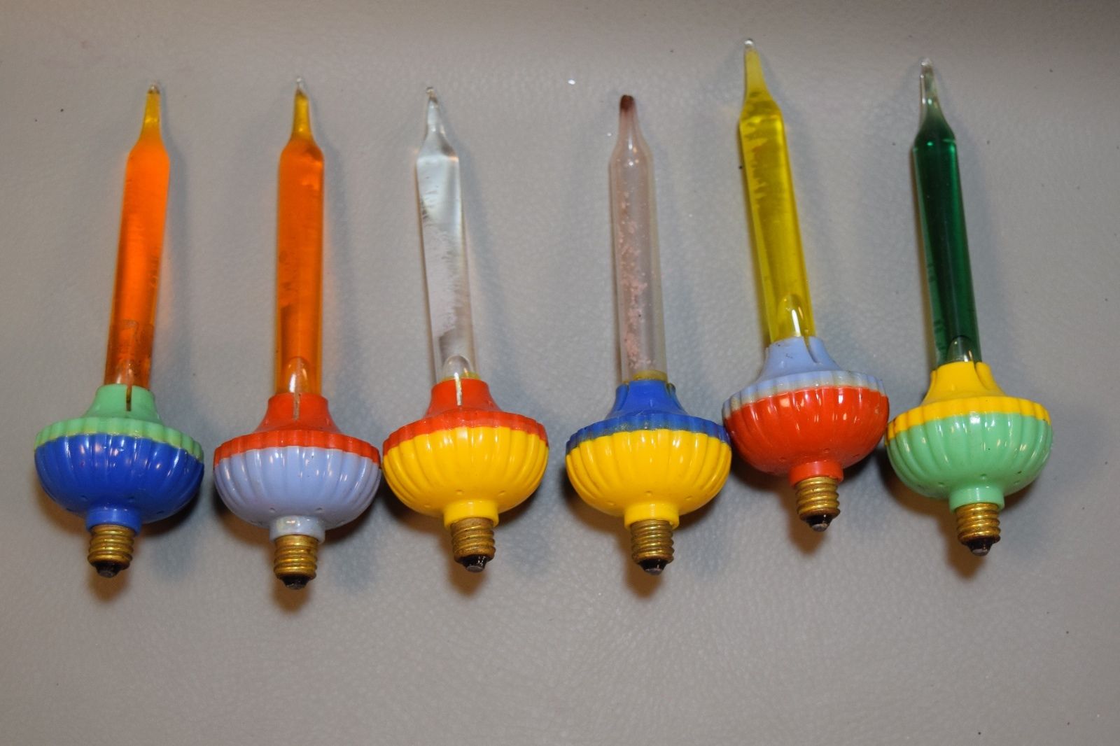 6 VINTAGE CHRISTMAS ROYALITES BUBBLE LIGHTS TESTED W/9 VOLT WORKING 1 EMPTY