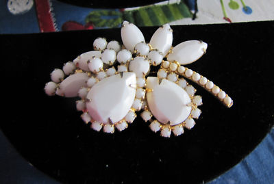Vintage Milkglass Faceted Rhinestone Floral Brooch/Pend