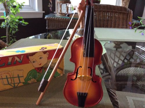 Vintage 1950''s 10" Violin Tin Toy In Original Box